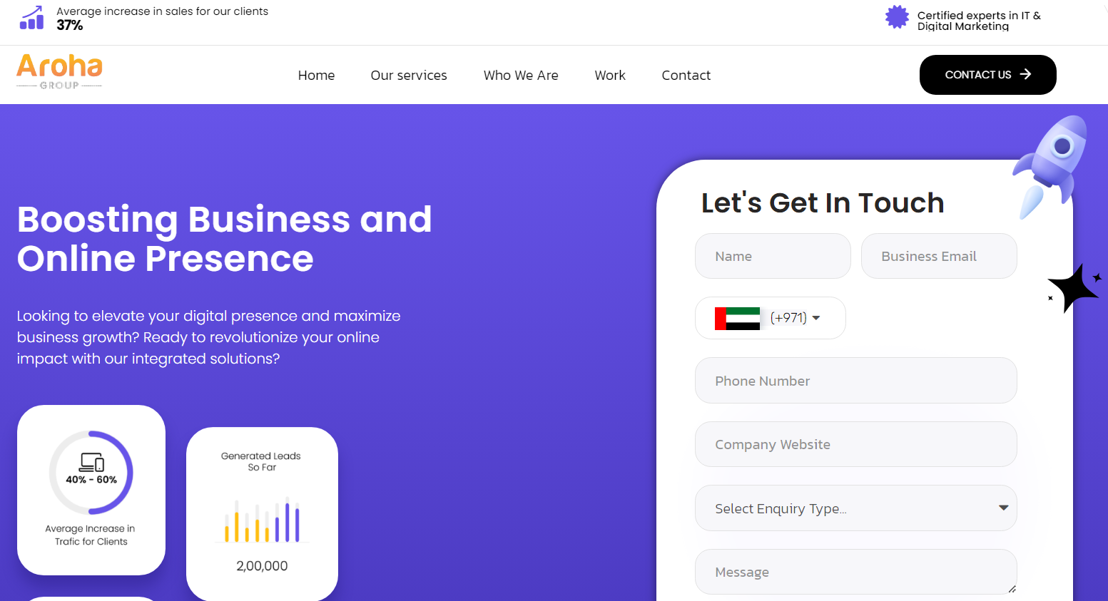 Unlock the potential of your online presence! Fill out the form to claim your free marketing audit. Let’s schedule a call to discuss how Aroha Group can tailor a strategy that propels your business to new heights. Your journey to digital success begins here.